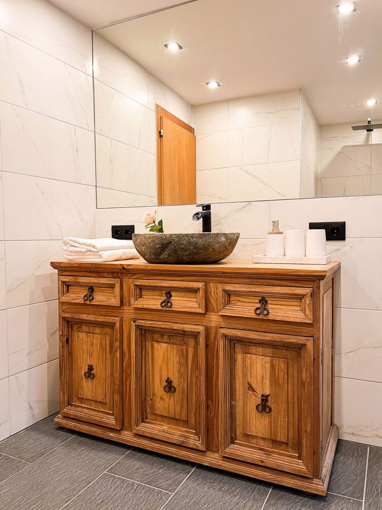 Der 21 m² große Balkon hat eine wunderschöne Aussicht und ist der ideale Platz, um den Ausklang des Tages oder die frühen Morgenstunden so richtig zu genießen. Bei Sonnenuntergang färbt sich die Lobspitze rötlich und begeistert die Betrachter. Einfach magisch.
