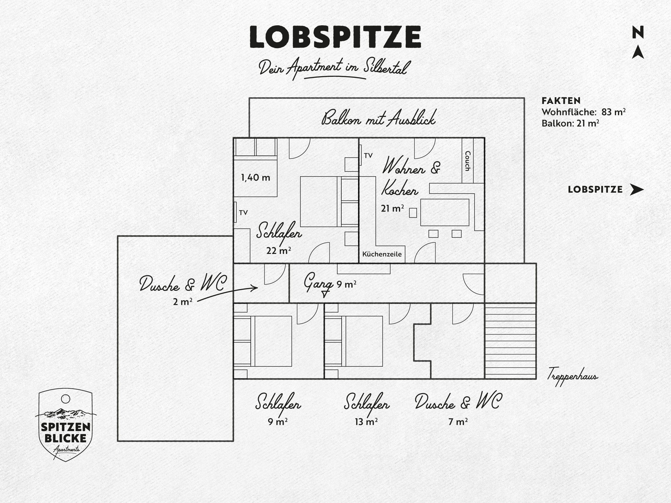 Das Lobspitze Apartment überzeugt mit seinem großzügigen Balkon mit Aussicht, seinen großzügigen Zimmern und seiner charmanten Einrichtung. Auch die Ausblicke können sich sehen lassen – besonders vom Balkon. Die Ausstattung hat alles für Selbstversorger zu bieten. Also das optimale Apartment für deinen Ski- oder Wanderurlaub im Silbertal, Montafon.